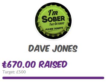 If you want to donate to this very worthy cause, and remember all proceeds go directly to MacMillan Cancer Support, just click here - www.gosober.org.uk/users/dave-jones