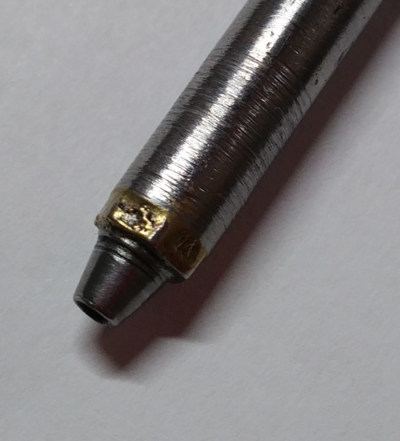 You can just use a modified grease nipple placed into the jaw of a grease gun but it wobbles a bit and extra care is needed so I brazed the nipple into a 150mm long tube with a threaded adaptor at the other end. The nipple needs the threaded section machining to give a tapered section to locate into the hole in the hinge and this is best done on a lathe. I brazed it all together but soldering will probably work as the pressure is quite low.