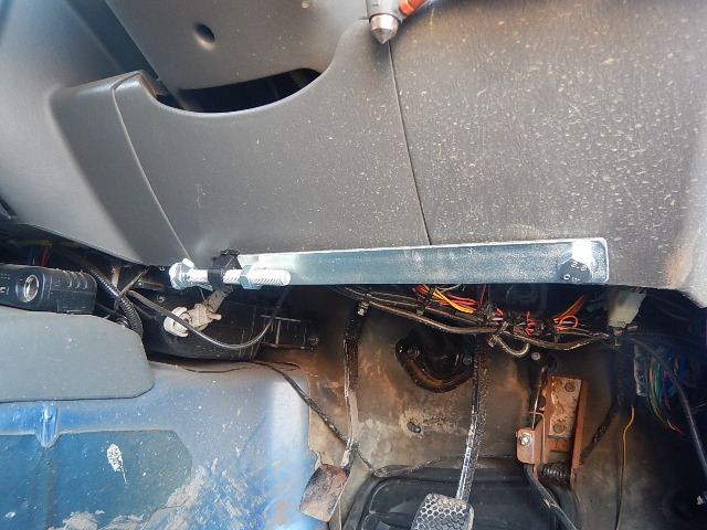 It simply bolts to the bottom edge of the dashboard, and then when needed -