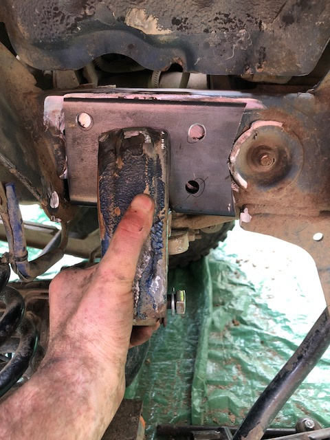The panhard rod bracket was only attached by 2 of 6 side welds, the others had all torn away (very reminiscent of brett;s same problem on the northumberland trip>!_