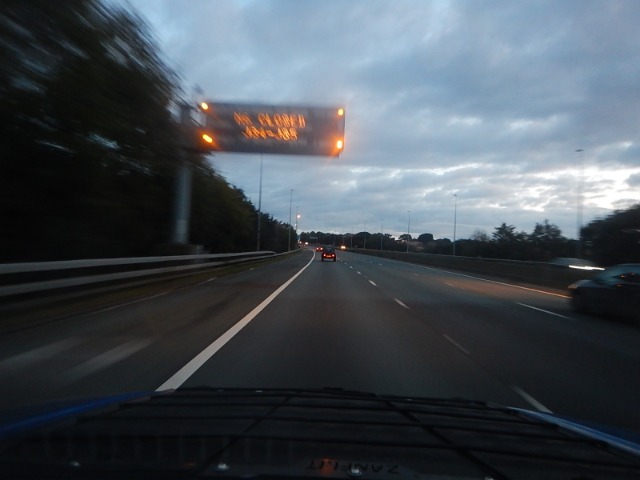 I met Brett at our usual 'heading north' meeting point at the start of the M56 where our two jurneys coincide, and I was following him up the M6 when the signs started flashing that the m6 was closed between junctions 34-35... and we wanted? Yup... Junction 36! So Brett led us round it, so that we still met the others...