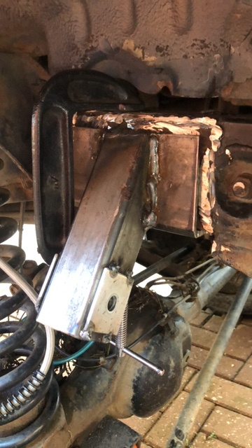 I stripped the old panhard rod mount off, and found the 3mm stick steel of the 4"x2" box section I used back in July to make the repair had been torn in two just before the welds, so this time I used some 6"x4" box which is 6mm thick, and rather than try and rescue the old mount, I made a new one out of some 4"x2" box section that had already been cut in nalf length ways when I was making a batch of shock spacers...