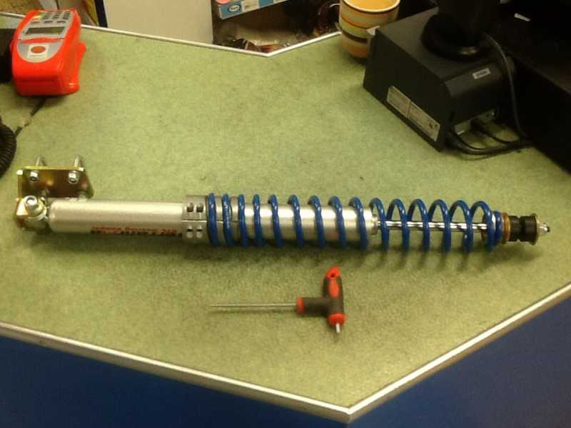 A nice big TerraFirma damper meant for a Land Rover Discovery 1 (that's what I've got fitted now) but with a self centering helper spring on it too... It's a pin and ring damper, but it comes with the mounts to mount the ring end to the steering bars, so it will fit my Jimny, and will be the same length as my existing one, so I know (?!) it's going to fit alright... and I'm hoping the additional spring will help with the size, weight and height of my Jimny and it's 31"s... As the damper is meant for a Disco' (and Defender without the additional bracketry).