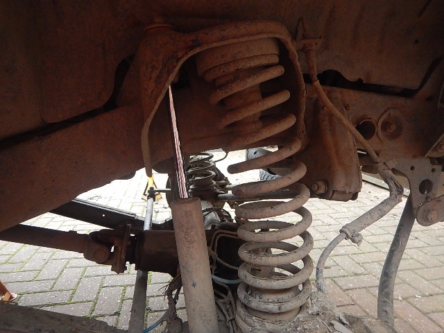 Front springs in then, on the original spring seats I'd stored in the garage (i.e. no spring spacers up front this time) and an extended bump stop finally fitted into the front springs, again, this could also have contributed to the front springs sagging...