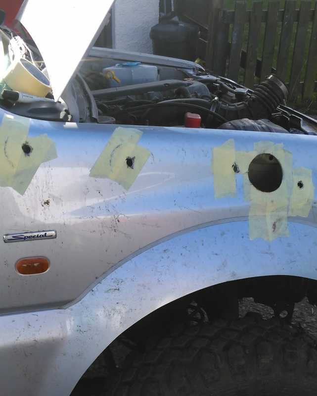 Havent been doing much lately with the Jimny as I was on holiday and when I came back jus didn't have the motivation, but then I was seeing my mates every weekend off roading so pulled my finger out and went for it haha. Got the wing cut for the snorkel to go on,much better job than the last time I done it haha.