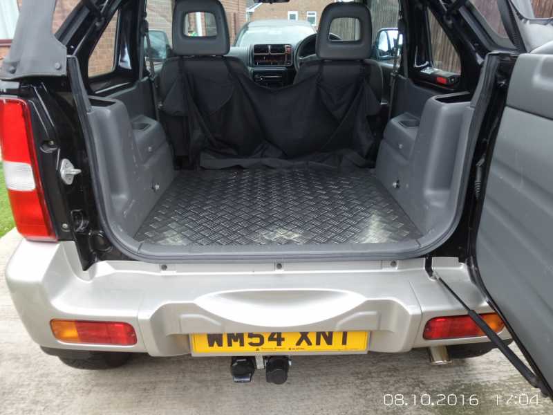Oh yes, also couldnt help myself, cods Jimster was a bit bling at the front, thought i'd bling the rear lights as well, and fitted a pair of 2.500lb. strength 12mm stainless tow/shackle eyes at same time..The rear deck i fitted an alloy strip to stop stuff sliding into rear footwell, and, found that the plastic boot tray which came with Jimster.fitted perfectly over it! Thus giving a usefful tray on deck behind seats..loads more planned,, addictive isnt it?