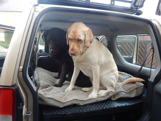 Relieved to get home! :lol: (Buddy "the Bear" on the left, and his little brother Milo on the right)