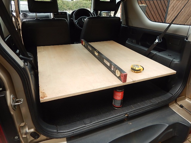 My sketch of what I wanted... basically a box above the jack well, so that I've got a bit of storage space for a tow rope, dog's water bowl, leads, etc, and then a floor that folds up behind the seats, but then when the seats are folded down it creates a flat floor for my two chunky labs to lie on, or for carrying other bulky items...