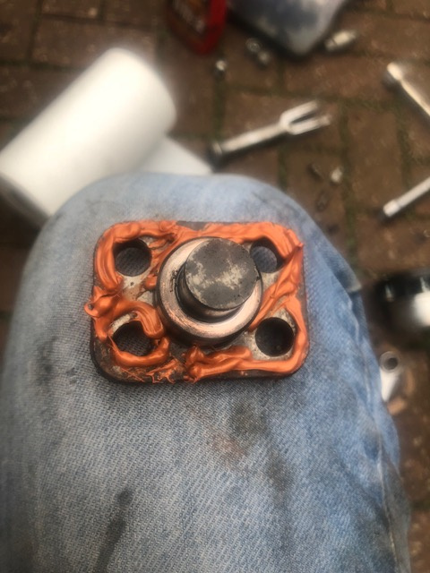 King Pins buttered with copper silicone sealent...