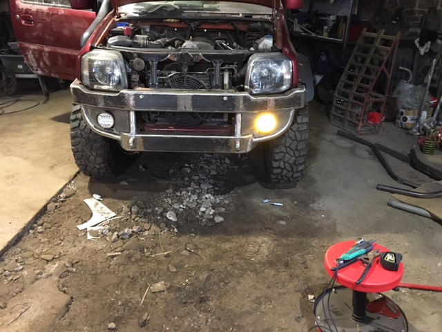 Got a couple of 2 function lights off amazon so have cut the mesh to let them poke through and welded on a little bracket for them to bolt to. Again, pretty pleased with them. very bright things.