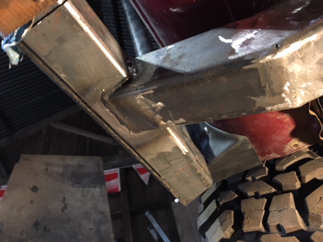 Next was starting on the bottom rockslider bar part of it. Cut some 50x50x3 box to fit and trimmed the bits of cage sticking down. Some spot welding to allow me to shift it about for alignment. Made up some bent arms to connect that to the chassis with some large spreader plates for bolting onto the rockslider bars. Actually managed to get a half decent weld on one of them as well :laugh: