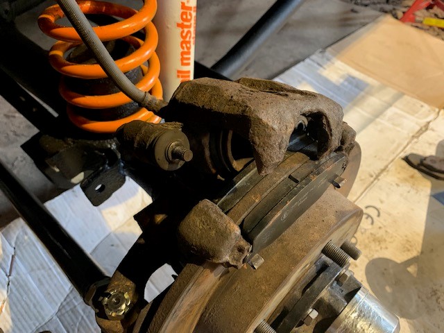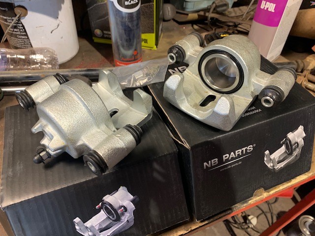 Back at the spanners again today. Got the new brake calipers on the front and new braided, extended and red lines on. Think I need to nip it up as it was weeping a bit on the connections to the old pipes (and bleed it all). Forgot a picture of that though :laugh: