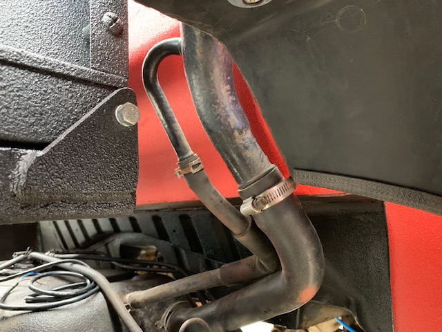 Then the final hose thing was the fuel filler pipework. Little bracket and it fits neatly enough...