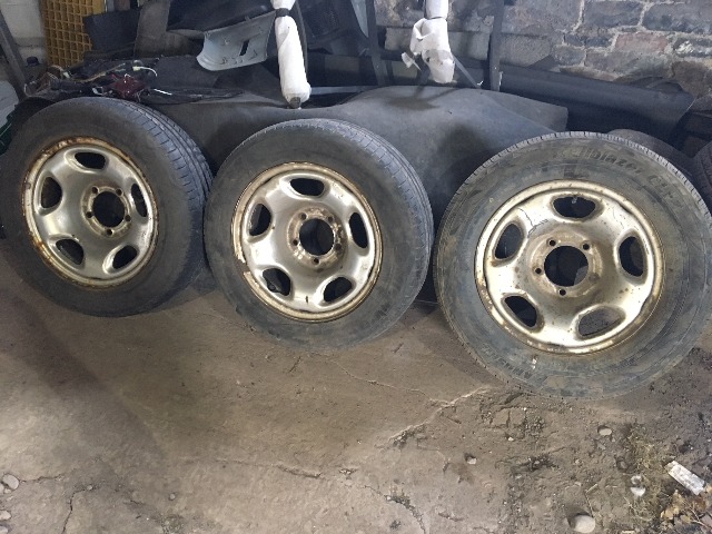 and finally got 5 of the grand vit wheels, all with mixed and poor tyres. will do for the MOT and will get them refurb'd and new rubber eventually. probably 235/85r16, but that means gearing changes as well!