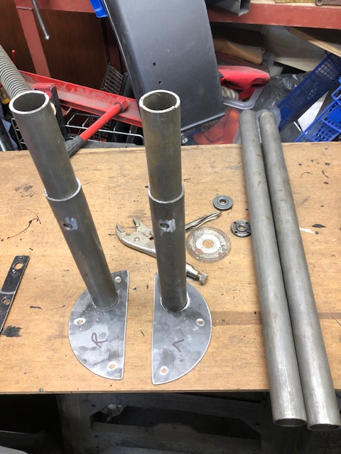 The offcuts of seamless rollcage tube weren't long enough for I what I wanted so I had to cut them to equal lengths and use a smaller diameter piece inside to sleeve them together...