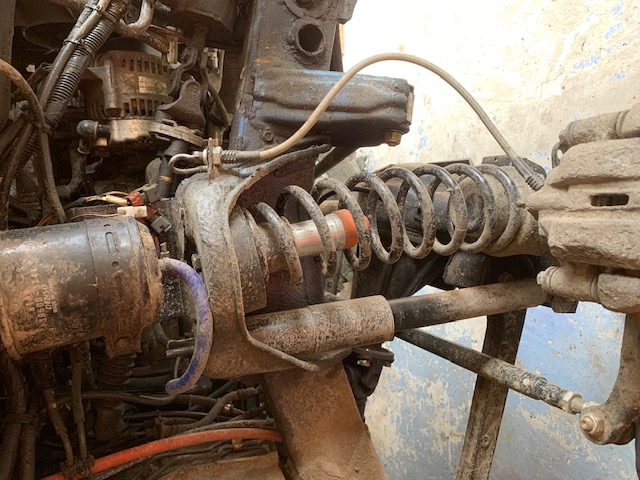 New spring installed, on a new rubber spring seat... that's sitting much better, and is wound from thicker wire so we shouldn't hit the bumps prematurely now, and when we do hit the bump it'll be a softer landing and a lot less harsh