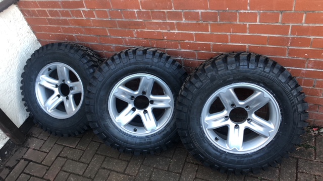 They are 16" Grand Vitara alloys shod with 235/70R16 (29"*) Malatesta Kamels