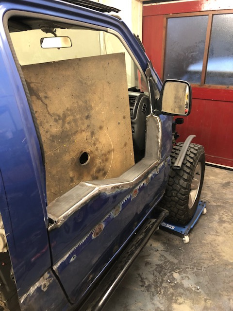 Attached to the inner skin too, they'll eventually be an aluminium chequer plate 'step' on the lower half of the door, and it'll fold into the inside to make a door panel too...