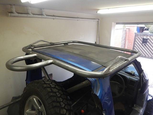There, the halo hoop all welded in place, with these extra couple of tubes to protect the soft-top when it's thrown back...