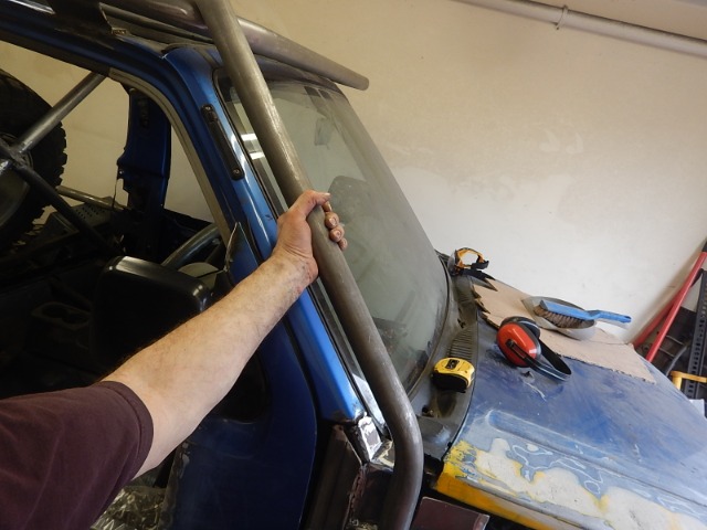 Out came the pipe bender (notice the A-pillar tubes on the drive in the background)