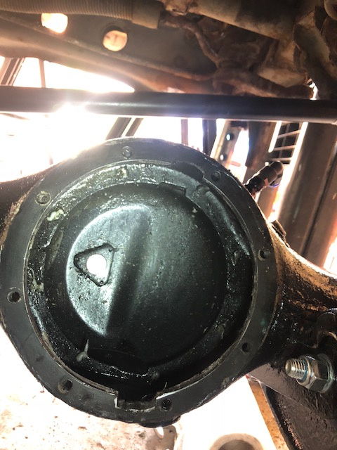 ... I tried to test fit the later VVT diff into the axle casing... it's a 4.3 ratio diff, ie 43 eeth on the crown wheel and 10 on the pinion, so it#s a bit bigger diameter than the original 3.9 siffs, and so... they wouldn't fit!! I could have kicked myself as the axle casing had been out from under the Jimny and on the bench... I don't know why I didn't test fit it on the bench... So, I had to disappear under the Jimny with the angle grinder to clearence it by cutting the two square slots bigger...