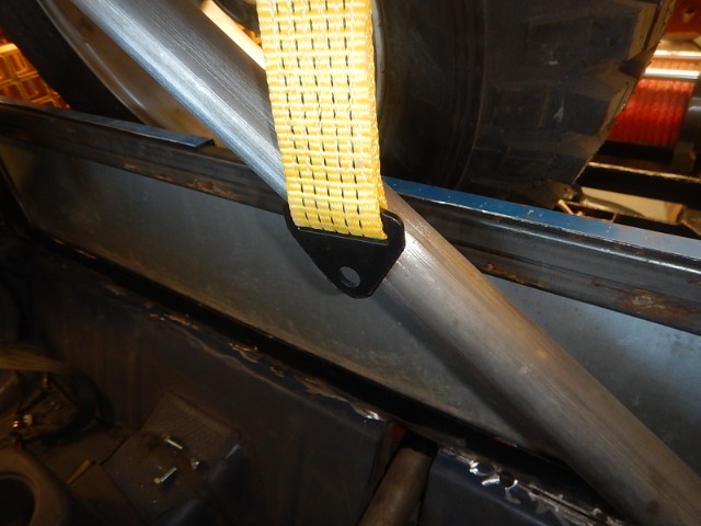 Next the spare wheel and it's ratchet Y-shaped strap come in...