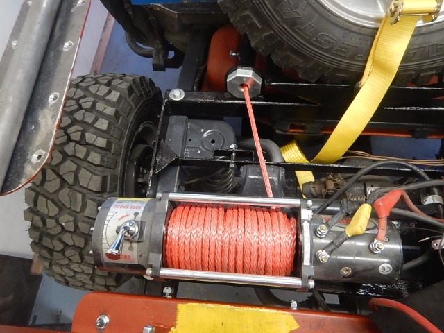 Onto the drum! So a slightly weird setup... the winch is in the back, and works through the tube that runs under the passenger (Alan's!) seat, and out the front -