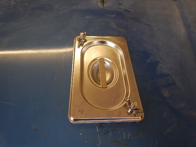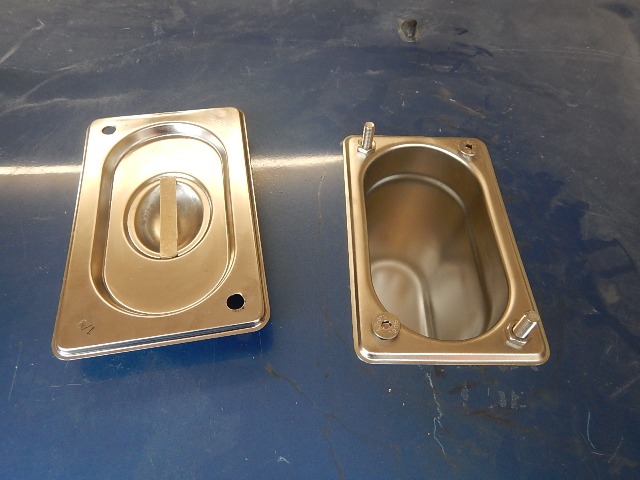 I then drilled the pan with four holes, and two through the lid as well... two bolts go up, and two go down, the two going up have halfnuts on them...?