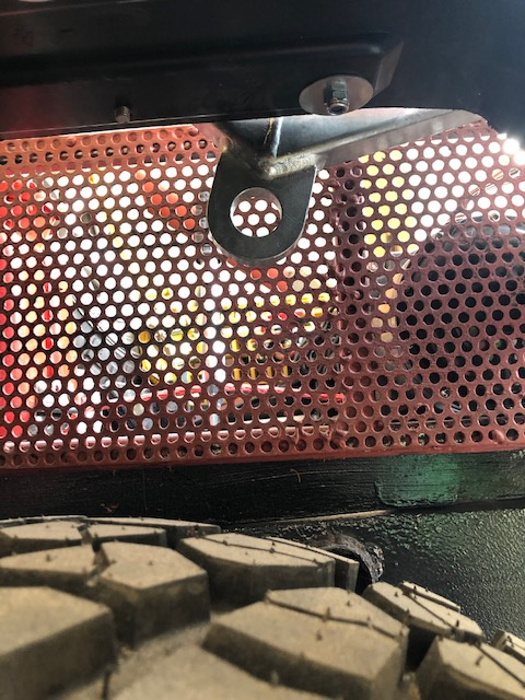 The 'kink' in the arm ends up here, above the tyre but enough out of the way that it won't foul on the tyre under articulation... That loop hole is used to pull the anchor back out of the ground if it digs in too well! :laugh: