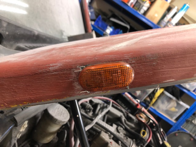 Drilled, cut and shaped the mounting hole for the the other side repeater in the bonnet edge on the driver's side...