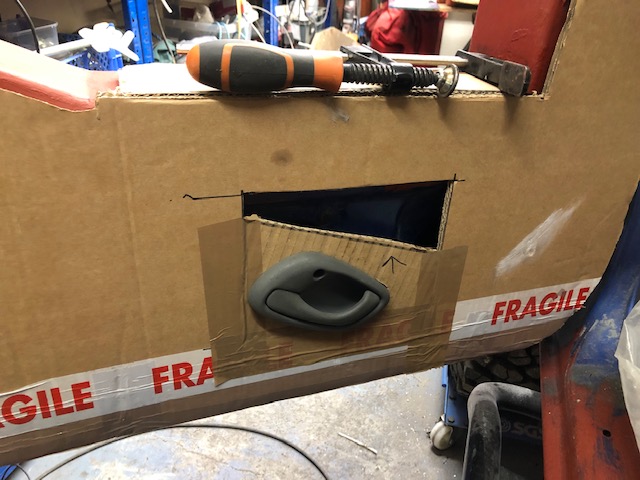 I then I turned my attention back to the door cards... you may remember I'd already made the cardboard templates? Today's job was to work out how to relocate the door handles...