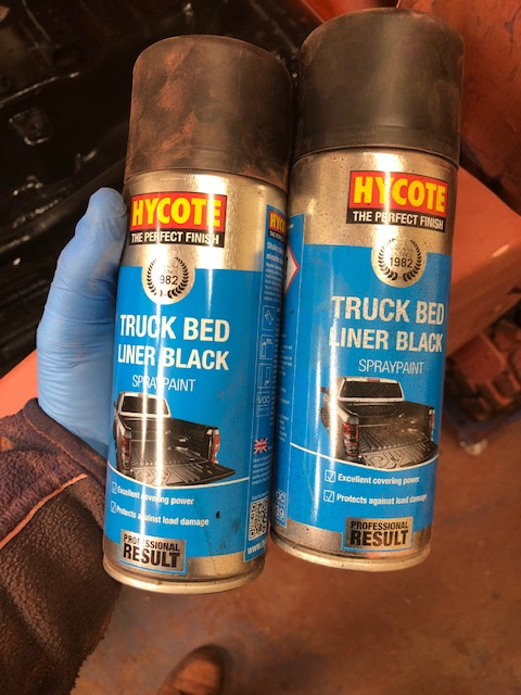 I finished the day by completely hoovering the buggy inside and out... just waiting for some "tack cloths" to arrive before the external painting can start, so I emptied two cans of bedliner...