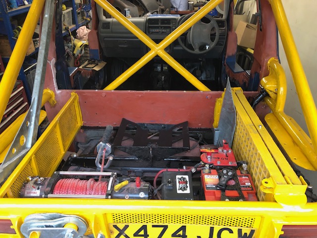 Then the winch was re-bolted down, the ground anchor and it's mounts reinstated. and the waffle boards back in their holder... just need to paint the back of the "wading wall"* blue and then the spare wheel and it's strap can go back on too!