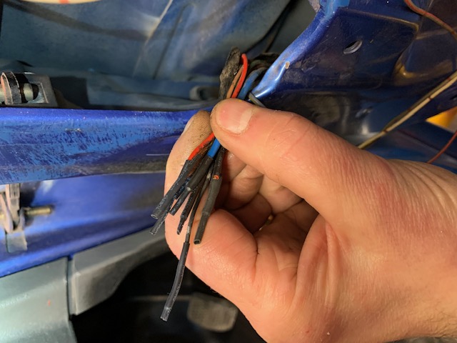Then the three mirror wires were cut to length, stripped, joined, soldered, heat shrunk, sleeved with another big heat shrink over the joins, and then tucked into the door inards... Thank God that was all done and working!