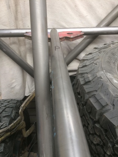 You can just see the cross chassis bar and the two bars either side of the spare wheel, which have been added today. It looks like the back end of a quad bike......