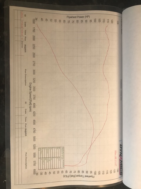 A little disappointed that it didn't break 100bhp but that's all in my mind.... The important figure is the 117ftlb of torque which makes the car nippy and capable... 5th gear at 25mph and pulls cleanly from 1800rpm.