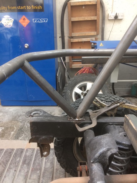 The rear chassis legs will be cut short to just after the tube mounts, then be joined across the back of the car and recovery points mounted. Terry is sourcing a much smaller silencer which will fit in the reduced opening.