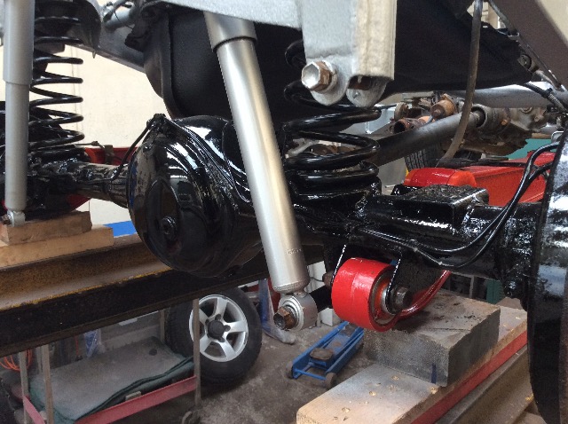 new springs ,shocks and poly bushed the rear axle blasted and painted radius arm and coated the axle in gloss black.