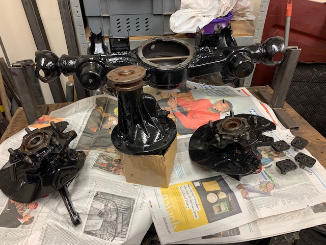 Axle casing, diff, hubs and kingpins all treated to two coats of black Smoothrite...