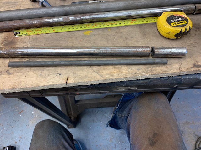 Whilst cutting the seamless tube sleeve to length I cut the offcut down the middle to make a good welding guide to get the narrowed bar straight...
