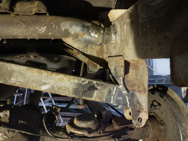 Got a bit more work done this afternoon. The only thing I could do with the right hand side of the rear crossmember was to cut out the worst of the rot then drive in a chunk of pipe that fits inside the original pipe. It's welded both sides of the chassis. The rot in the panhard rod brace is also fixed and the stupid gap above the brace filled in. For some reason the driver's side of this truck has significantly more corrosion than the passenger's side. Normally it's the other way round.