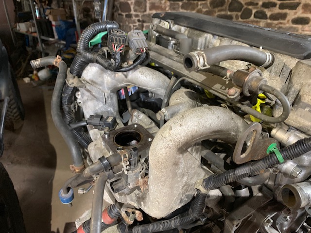 Yellow RX8 injectors installed, and brown Liana injectors removed. Knock sensor fitted. Started tweaking the inter cooling pipes and cutting some to size. Ideally I should of got a 120 degree angle bend for the throttle body to meet the intercooler but it will work. Turbo outlet to intercooler has matched up well.