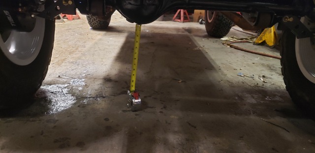Take off 0.25" for a slight bend as the tape was jammed in there under tension & you sill have 15.25" minimum clearance at the diff on 31.5" tyres.