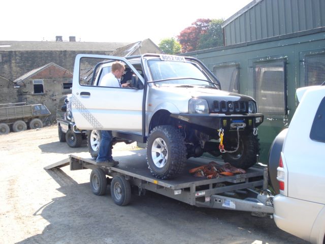 My Ifor Williams LT126 The jimny fits perfectly on it, and narrow enough to fit into a single garage