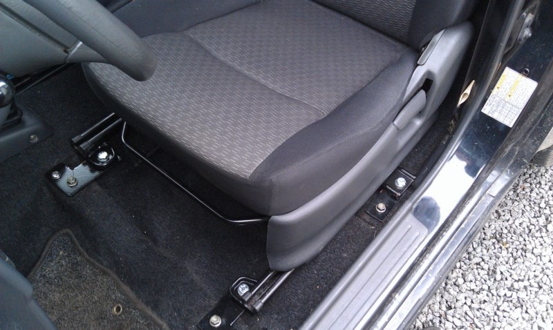 Prunsen wrote: I have made some fine extension-brackets for the drivers seat in my 2005 Jimny. I'm 2 meters tall and really needed some space for the legs. When brackets are mounted, in the original holes, the tracks under the seat, are moved 70mm's to the rear = That's enhancing the comfort for me as a driver sooooo much - it's really like a limousine !!