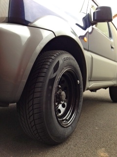 Got my new 15x8 wheels (zero offset) fitted with the winter tyres and bolted on.