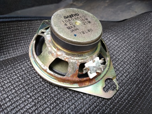 Also swapped out the speakers, evidently some moisture had wicked its way down the wires on the driver's side at some point as the basket was all rusted & the cone itself was warped from the moisture. But there's no sign of any moisture/damage inside the compartment, so I'm not too worried. I ended up removing the plastic of the proprietary connectors to leave the regular female spade connectors bare, so I could just crimp/solder some male ones then heatshrink over them.