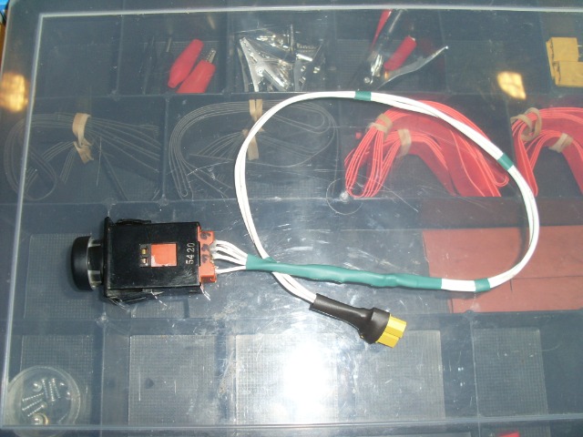 the switch I've already got, Bonus! So soldered some tails onto the contacts to find out which pin did what