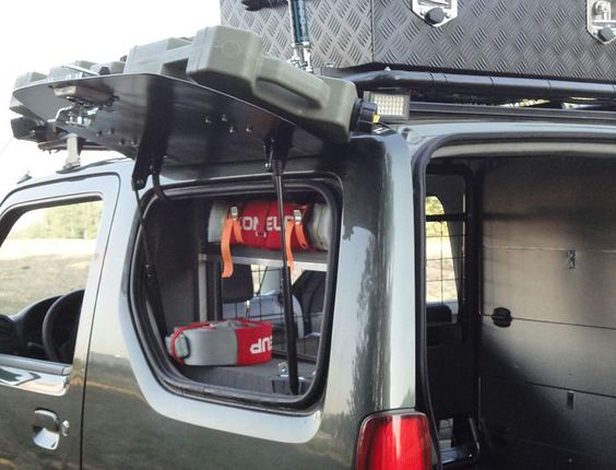 Not today, but a couple of weeks ago I added a game rack across the rear seatbelt mounts, and a shelf to the back door.....