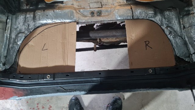Next, the boot floor. A quick template to get the curvature of the hole I cut: